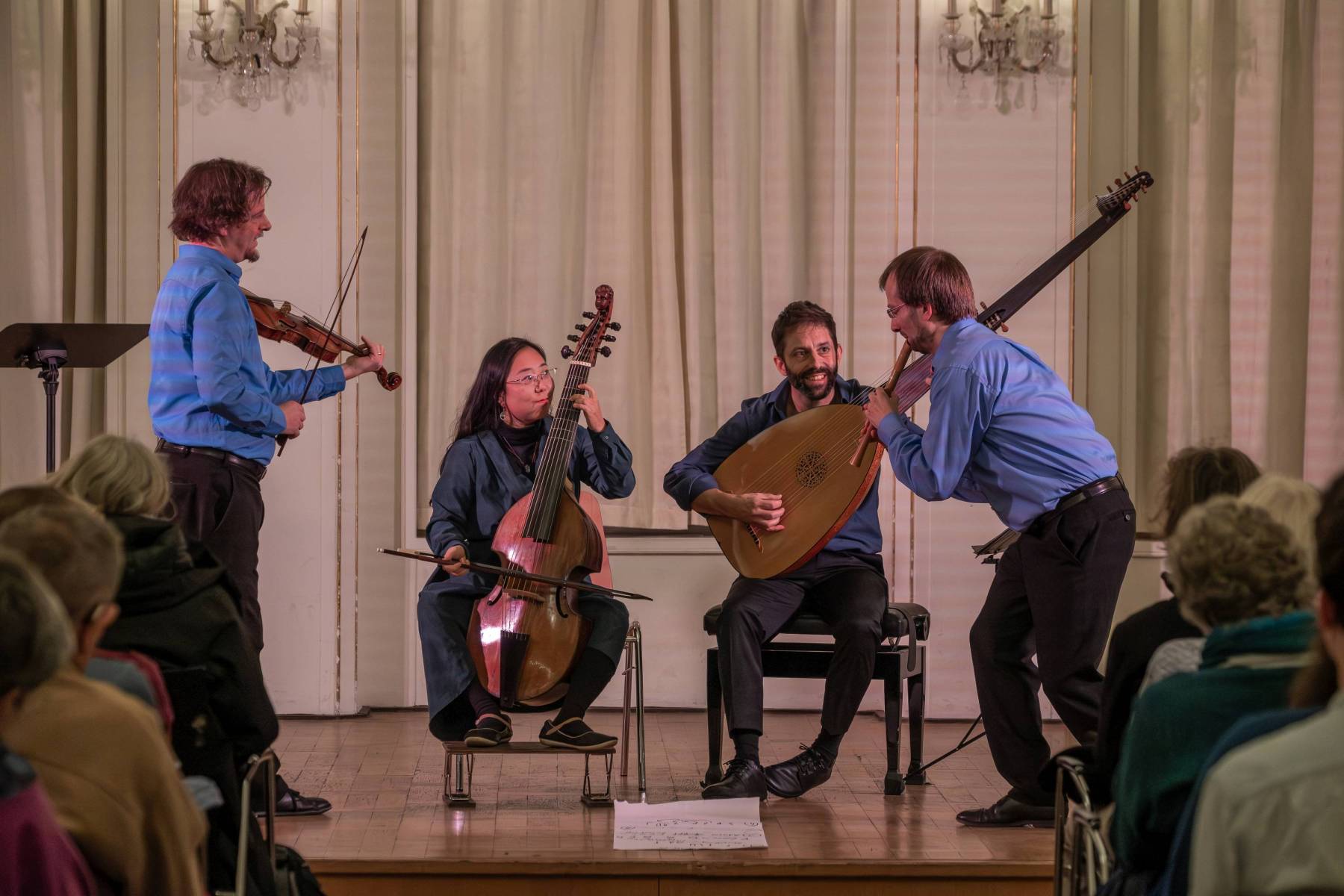 Diese sorgfältig zusammengestellten Workshops boten eine ideale Vorbereitung auf die Jam-Session am Samstagabend, bei der Standard-Bässe wie Passamezzo, Grounds, Follia oder Spagnoletta einstudiert wurden.
